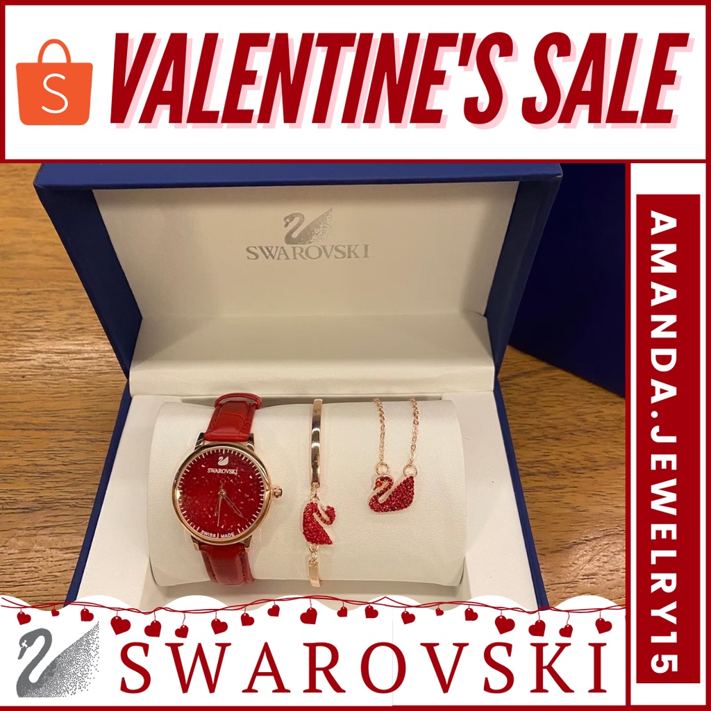 Ready Stock Premium Swarovski 3in1 Swan Crystalline Watch Bracelet Necklace Set Include Swarovski Gift Set Box Lazada