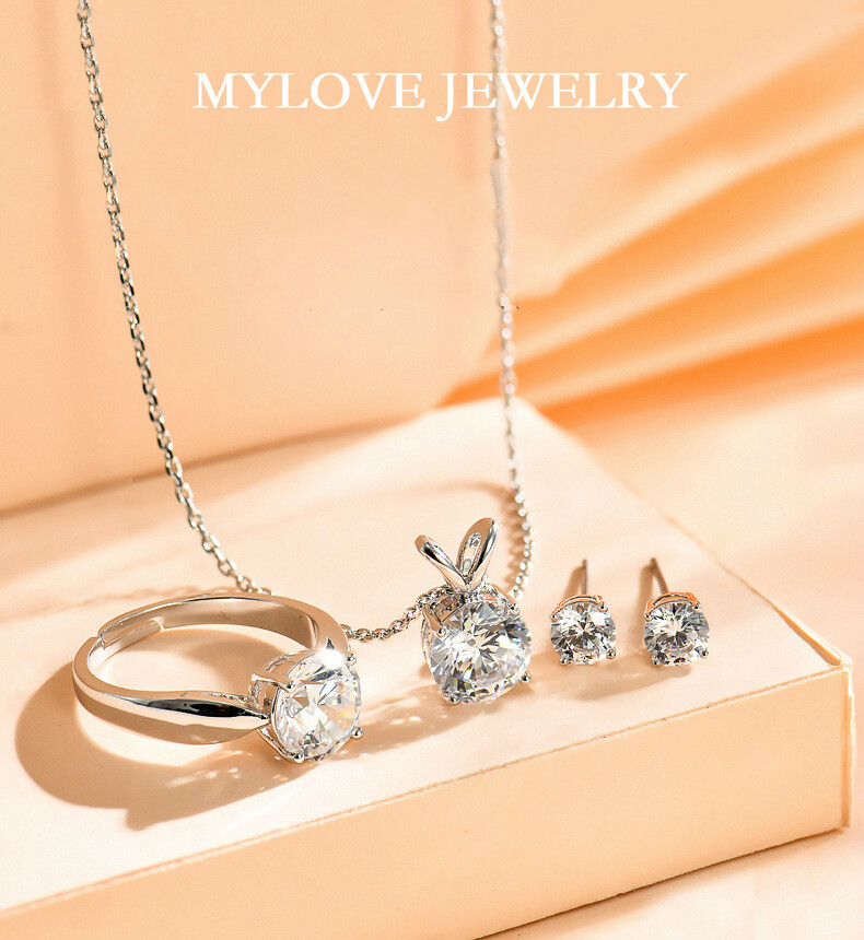 Freebie Jewelry Sterling Silver Swarovski Crystal Zircon Women S Necklace Earrings Ring Gift Set Lazada